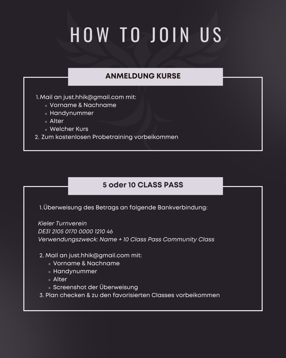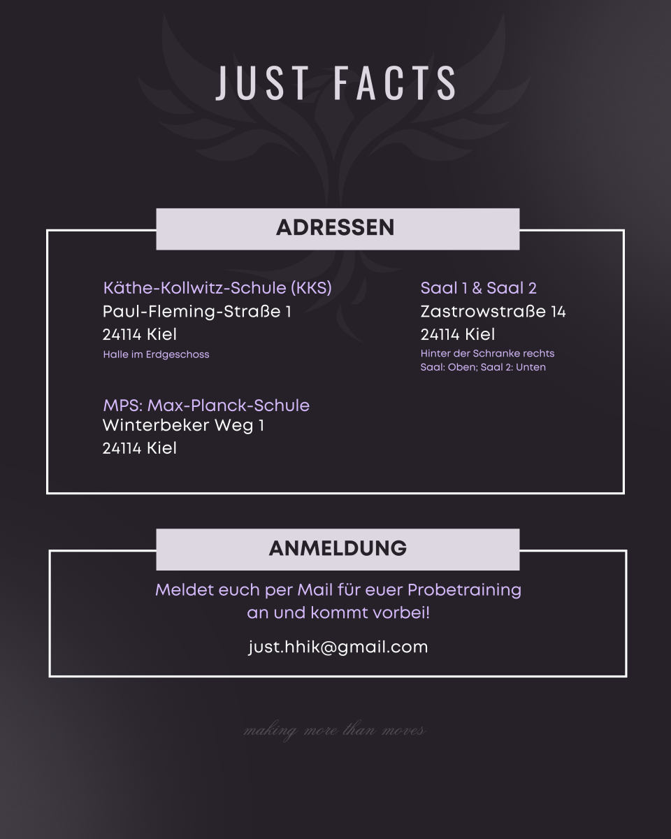 Probetrainings nur auf Anfrage: just.hhik@gmail.com